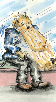 Ya sé que el amarillo no es extraño en los perros como el azul de Gabo, pero lo cuento porque espero que este Pillo sea el primero de un puñado de historias sobre perros de colores. También es primera vez que me aventuro fuera de las tiras cortas, pero lo estoy haciendo igual, con papel, tinta y acuarelas.
